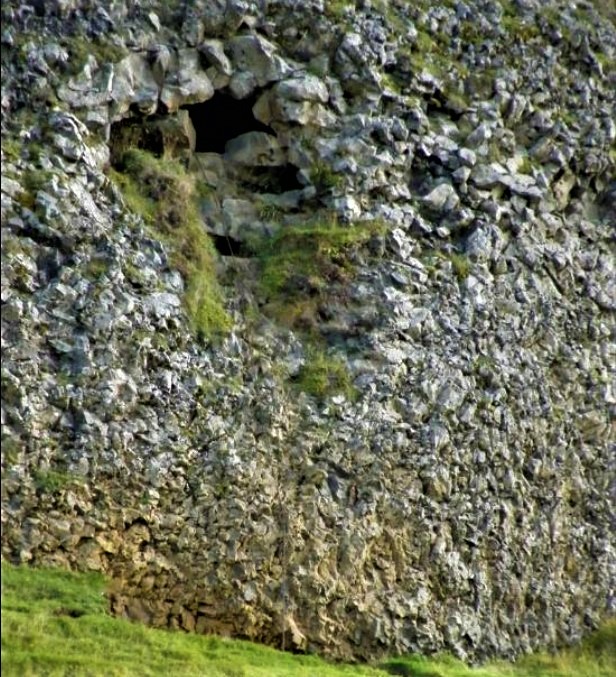 The front of the Rút’s Cave (Hrútshellir). The stone barn was later built in front of the cave. Source |