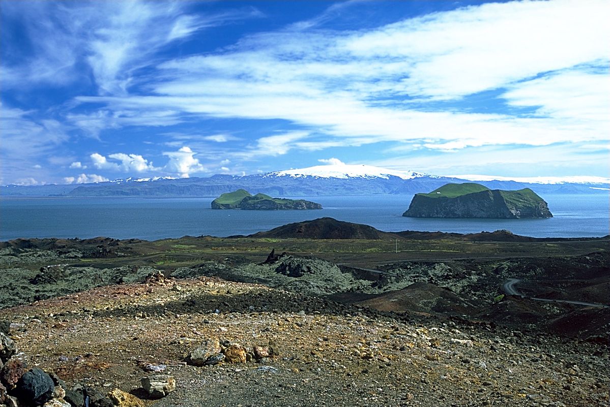 Eyjafjöll and Eyjafjallajökull seen from Vestmannaeyjar. Source |